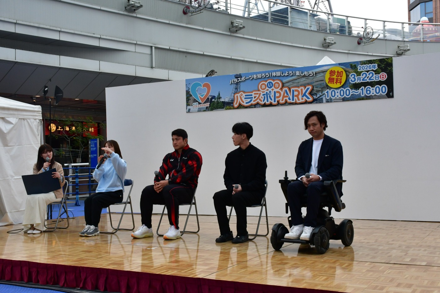 トークショーのゲストには、あいちパラスポーツアンバサダー 登坂絵莉さん、アスリートゲストの湯上選手、名古屋市出身の車いすYoutuber 寺田ユースケさんなど、とっても豪華!