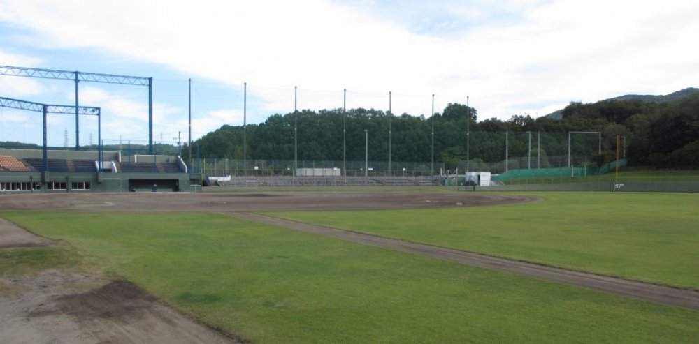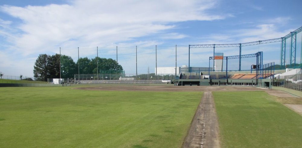 センター121メートル、両翼97メートルを有する天然芝の球場です。春、夏、秋に行われる県の高校野球大会の会場でもあり、スタンド収容能力は6,000人です。