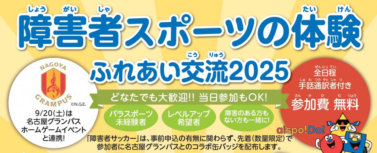 愛知県では、スポーツを通じて障害のある方の社会参加と障害に対する理解の促進を図るため、県民の皆様に講師による実技指導の下で、障害者スポーツを実際に体験していただく障害者スポーツの体験イベントを2015年度から開催しています。 つきましては、「障害者スポーツの体験―ふれあい交流2023―」の参加者を募集しますのでお知らせします。
